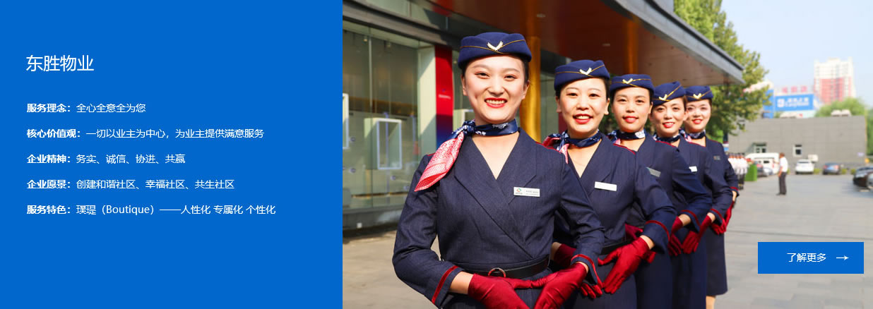 作为中国物业管理协会会员单位、河北省物业管理协会副会长单位、石家庄市、邢台市、张家口市物业管理协会副会长单位,20余年来,东胜物业秉承“以人为 本,服务至诚”的企业核心价值观,以“业务技能娴熟、服务意识强”的服务队伍、智慧高效的服务管控体系,围绕业主不动产保值增值,提供全生命周期服务, 围绕城市公建领域,承担更多服务职能,致力成为社区与城市运营服务的先行者,客户最为信赖的综合服务企业。